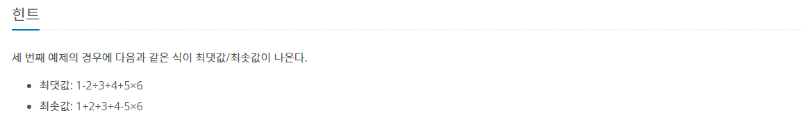 숫자 사이에 연산자를 넣어 계산해주어 최댓값과 최솟값을 구하는 과정을 반복하면 될 것이라고 생각했다.