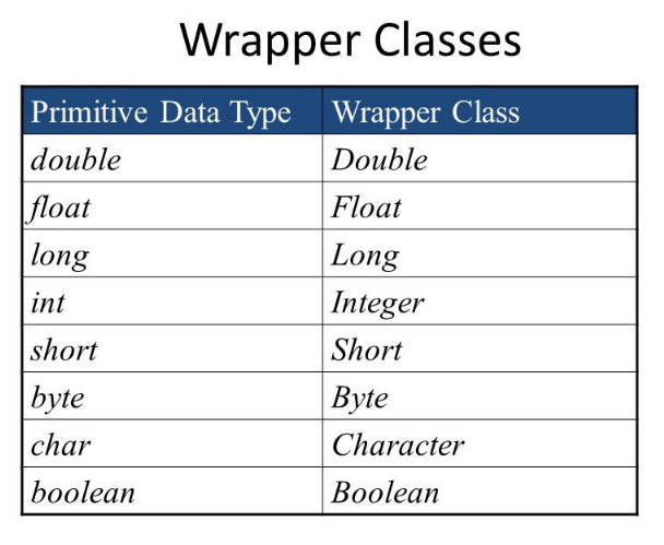 이런 경우 기본형을 객체로 다루기 위해 사용하는 클래스들은 래퍼 클래스(Wrapper class)라고 한다.